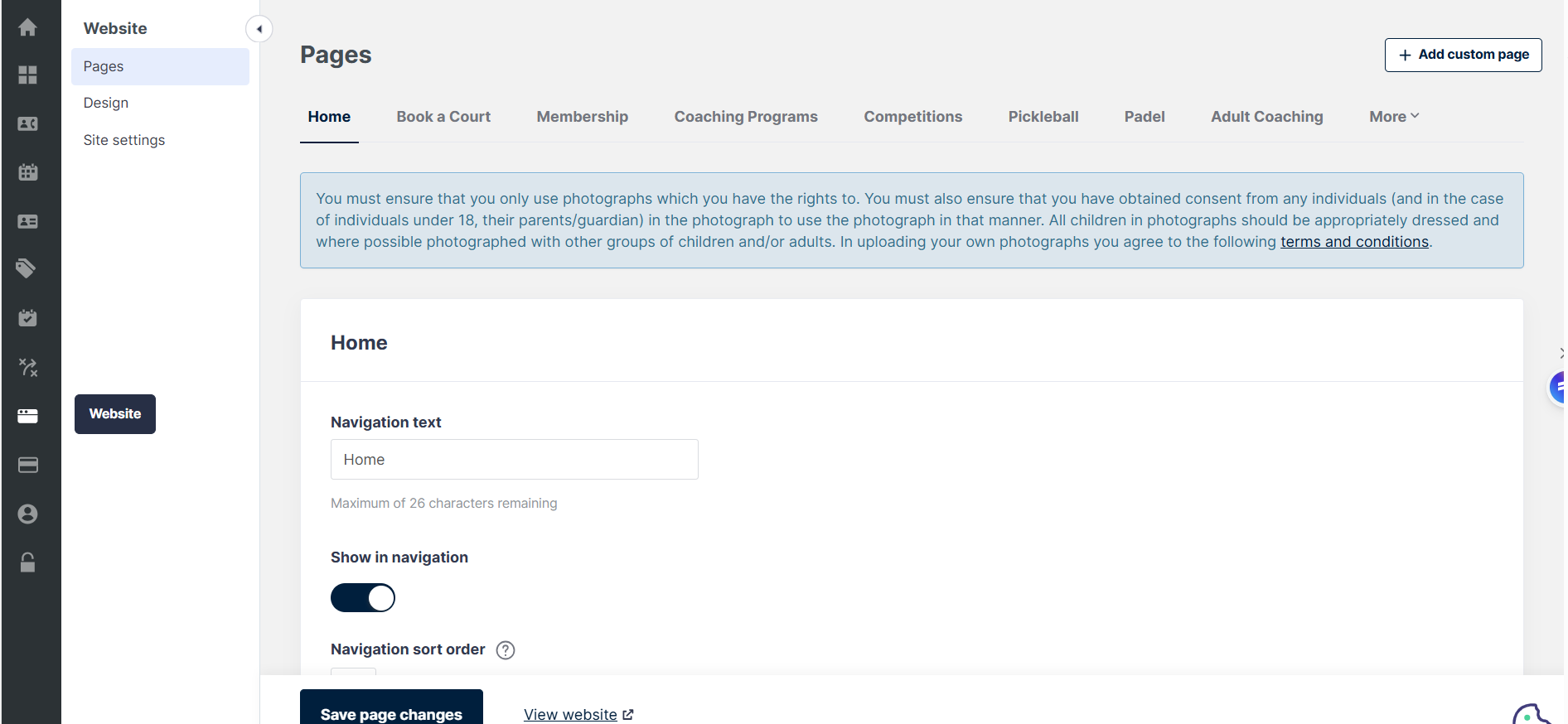 NOTE for current Book a Court Clubs: activating your full website will replace your existing online Book a Court landing page. . Ensure you allow sufficient time to activate and set up your new website module to avoid issues.