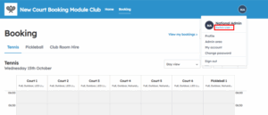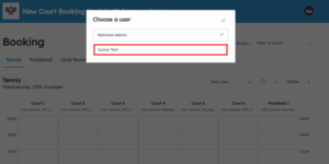 Log in to your Clubspark account and click your profile icon in the top right corner, then select Switch User